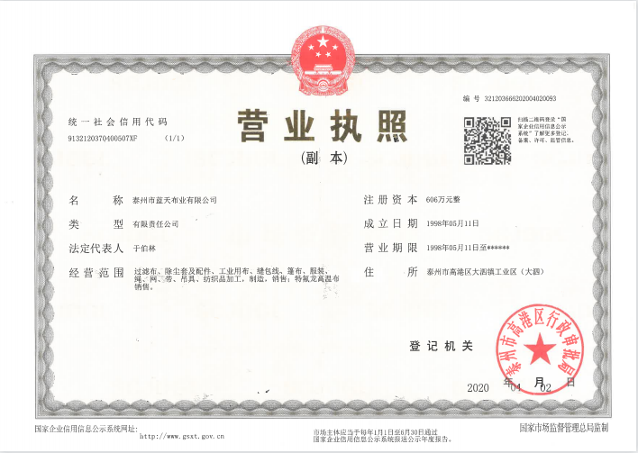公司專(zhuān)業(yè)從事紡織業(yè)生產(chǎn)已三十多年,已成為一家從紡絲、織造、后整理到后加工一條龍的企業(yè)。公司位于江蘇省泰州市高港區(qū)大泗工業(yè)園區(qū),交通方便,占地100余畝,擁有現(xiàn)代化標(biāo)準(zhǔn)廠房,現(xiàn)有員工120人,年產(chǎn)過(guò)濾布300萬(wàn)米、除塵布袋600萬(wàn)米、縫包線、長(zhǎng)絲線4...
